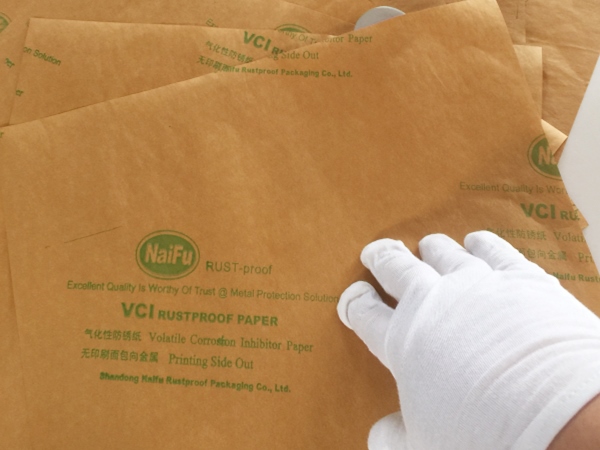 4、包裝過(guò)程---將含有緩蝕劑的面朝向金屬包裝,不覆膜防銹紙可作為金屬產(chǎn)品間墊層隔材使用,以免其他材質(zhì)阻隔材料含S、CL化學(xué)成分,影響防銹效果